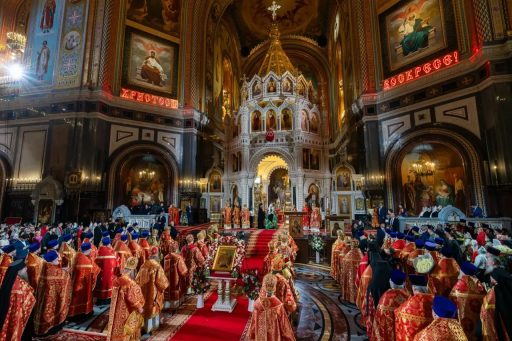 Святейший Патриарх Кирилл совершил Пасхальную великую вечерню в Храме Христа Спасителя