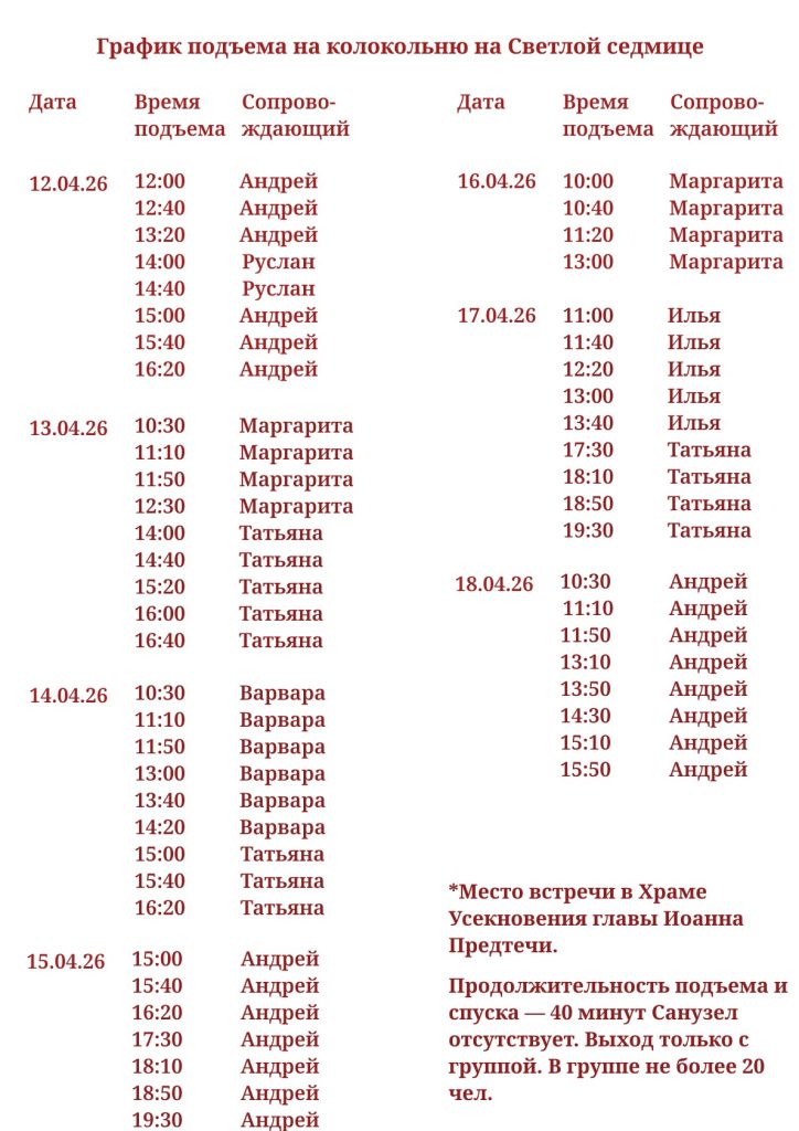 (В случае плохой погоды — в подклете храма Усекновения главы Иоанна Предтечи).