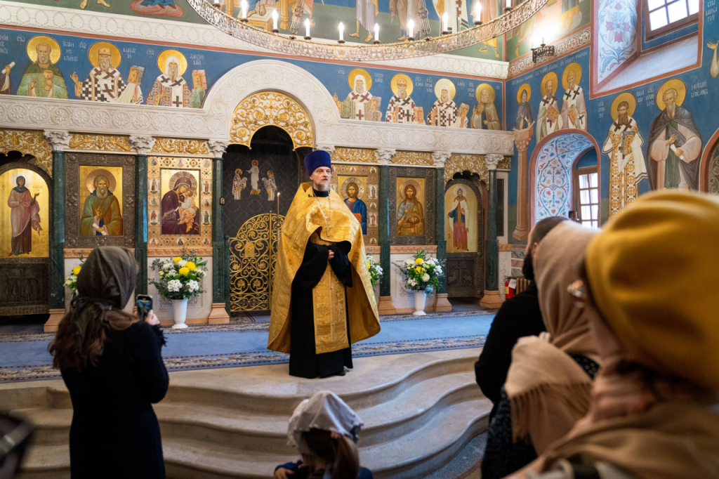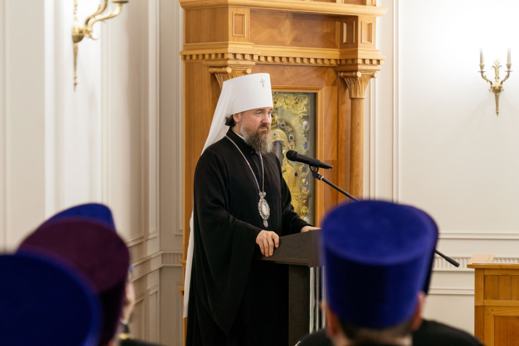 По окончании богослужения митрополит Воскресенский Григорий поздравил духовенство, прихожан, преподавателей и студентов с юбилеем освящения храма, обратившись к присутствующим с архипастырским словом и благословением.