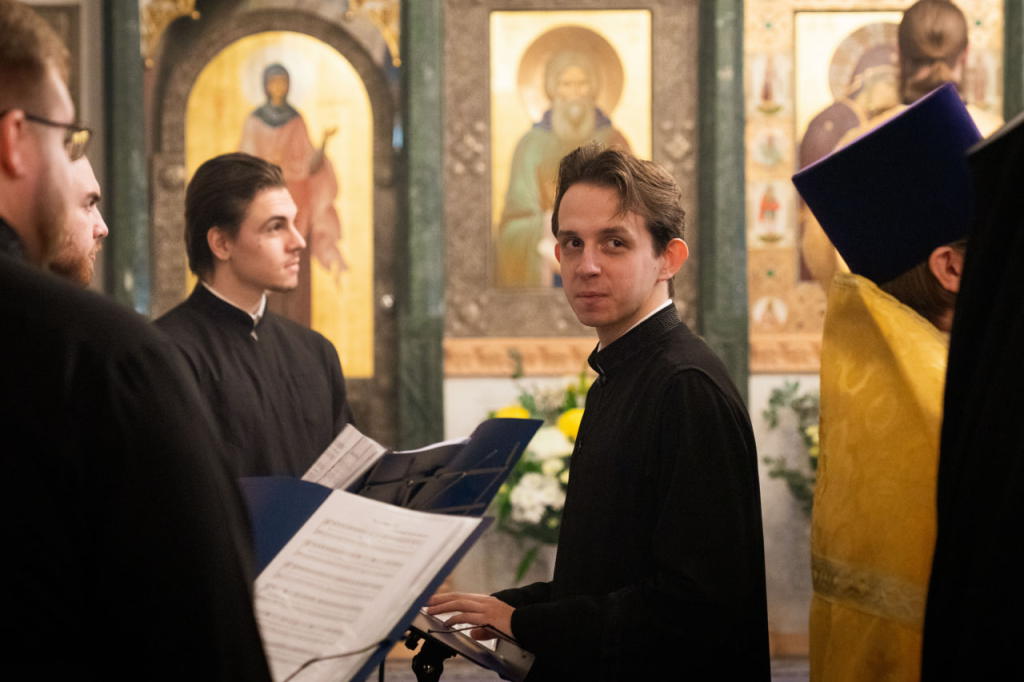 Впервые участие в Божественной литургии принял студенческий хор Общецерковной аспирантуры и докторантуры имени святых равноапостольных Кирилла и Мефодия.