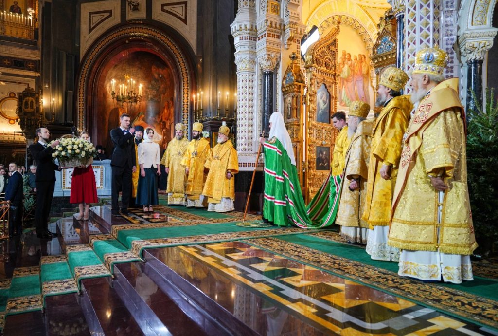 Евангельское зачало было прочитано Предстоятелем Русской Православной Церкви по старинному напрестольному Евангелию времен императрицы Елизаветы Петровны, которое выносится из алтаря Храма Христа Спасителя дважды в год: на Рождественскую и Пасхальную великую вечерни.